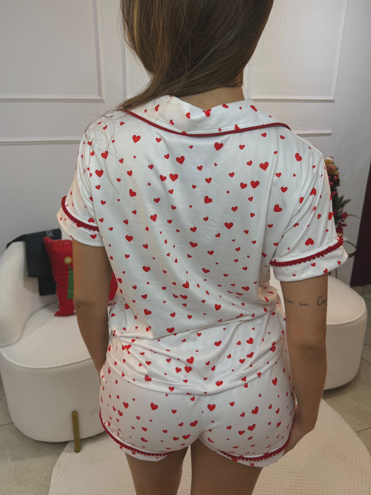 Pijama Estaçao Coração – Tecido Suede – Estampa coração